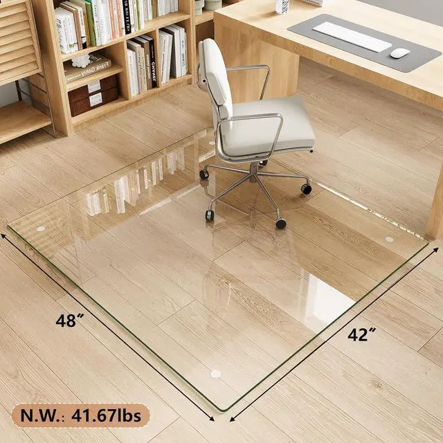 Universal Compatibility for Carpet and Hard Floors This versatile mat works as both a chair mat for carpet and a chair mat for hardwood floor. On carpets, its rigid glass structure prevents sinking; On hard surfaces like hardwood, laminate, or tile, it acts as a smooth protective barrierperfect as a desk chair mat for hardwood floor or office chair mat for hardwood floor. Ideal for offices, studies, dining rooms, living rooms, Gaming Room, and more.
