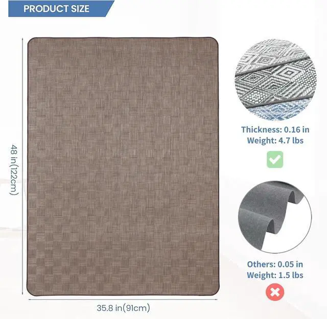 [Elegant Looking & Comfy use] The rattan-like woven pattern design of our mat can be used in offices, home rooms, outdoor... and it won' t fade over time. The cross-stitch backing maintains high breathability. EXTENDED LIP allows for under desk coverage and allows your feet to stretch freely and also have space to step on.