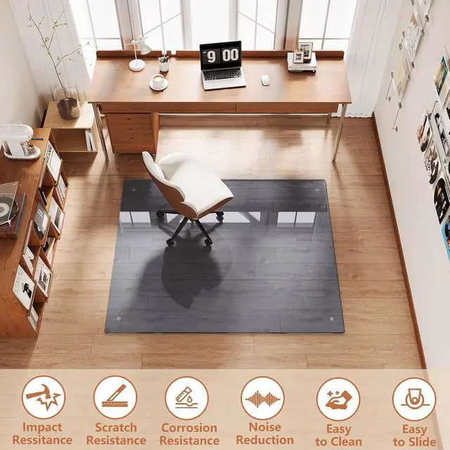 Durable Tempered Glass Chair Mat: office chair mat for carpet is made of 0.2 thick reinforced tempered glass that supports up to 1200 lbs. Durable, engineered for heavy daily use, it resists cracking, curling, breaking, scratching, and discoloring. Unlike ordinary glass, it is shatter resistant, ensuring both long-lasting durability and safe daily use.