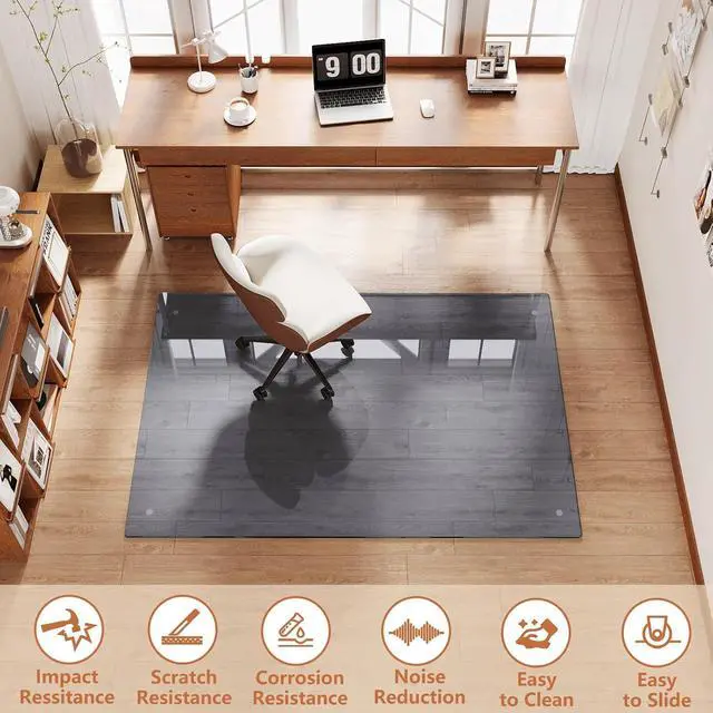 • Durable Tempered Glass Chair Mat: office chair mat for carpet is made of 0.2 thick reinforced tempered glass that supports up to 1200 lbs.Durable, engineered for heavy daily use, it resists cracking, curling, breaking, scratching, and discoloring. Unlike ordinary glass, it is shatter resistant, ensuring both long-lasting durability and safe daily use.