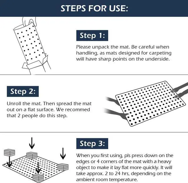 Better Stability: In order to ensure better stability on low-pile carpets, the nails of backing are slightly sharp. We have conducted several tests to ensure the best grip and safety, and the current sharpness is the optimal level. Please be cautious and prioritize safety while using the product.