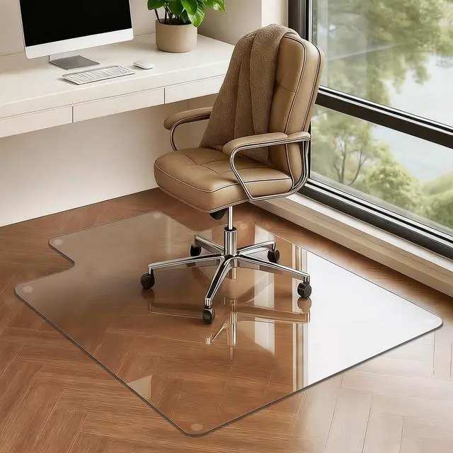 Invisible Shield & Elegant Aesthetics- Say goodbye to ugly, yellowing plastic mats. Our crystal-clear glass is 100% transparent, allowing the natural beauty of your oak floors or patterned rugs to shine through. Its not just a floor protector; its a modern office upgrade that looks premium and feels luxurious. Easy to clean with just a spray of glass cleaner.