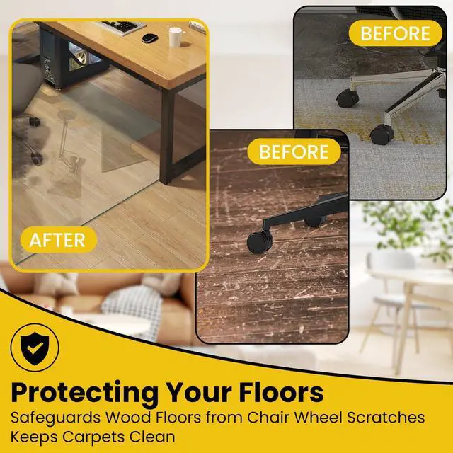 Effortless Gliding on Any Surface- Experience the " floating on air" feeling. The ultra-smooth surface reduces rolling friction by 70%, relieving leg strain and back fatigue during long work hours. Whether you have plush carpet (high-pile), tile, or delicate hardwood floors, this mat provides a stable, ergonomic foundation for your rolling chair.