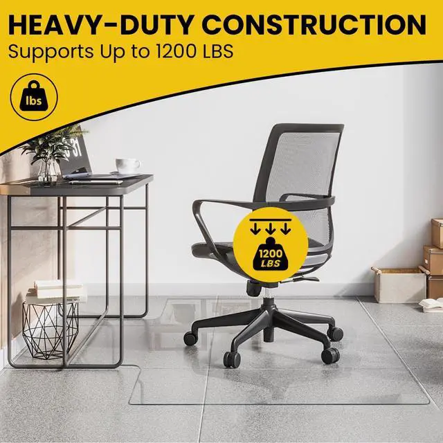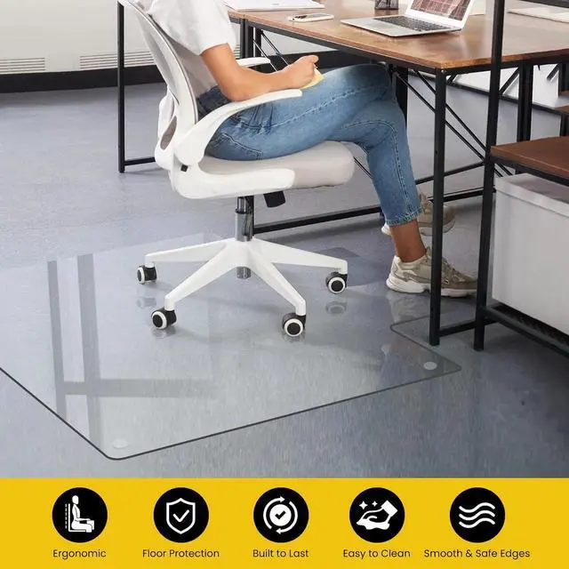 Ultimate Durability for Heavy Use- Engineered from industry-grade tempered glass tested to support up to 1200 lbs. Unlike plastic mats that crack, curl, or develop divots over time, this shatter-resistant mat stays permanently flat. Perfect for big and tall users or 24/7 heavy office use, ensuring your chair wheels never get stuck again.