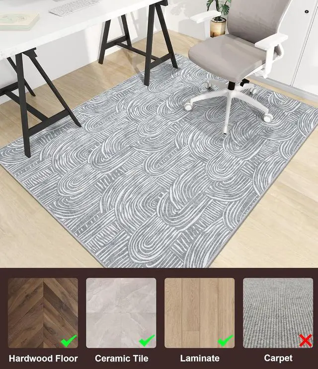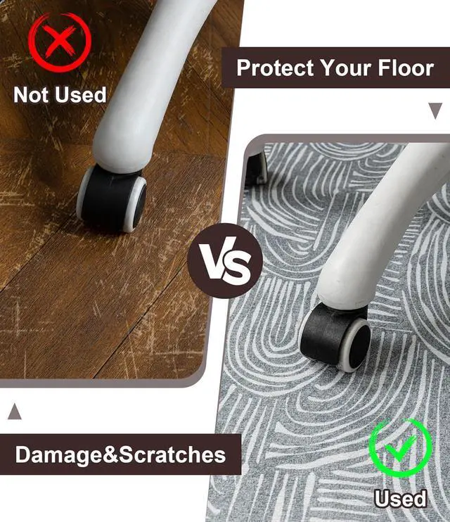 Protect your floorChakme office chair mat crafted from enduring polyester and rubber, with a thickness of 0.16 ", it protects your hardwood floors from damage by hard chair wheels and reduces the noise of rooling chair, it used for hardwood floor, ceramic tile and laminate, Please pay attention that this office chair mat isn' t suitable for carpet.