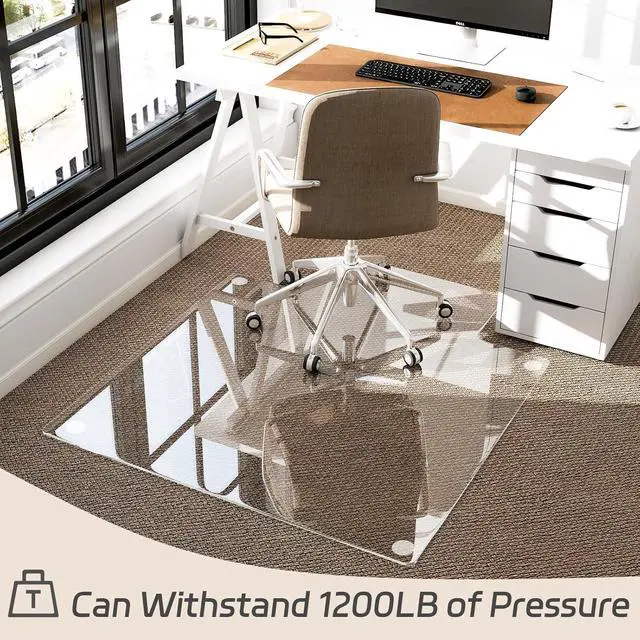 Crystal Clear Transparency: The transparent nature of the glass allows glass desk mat to blend seamlessly with any type of flooringbe it hardwood, tile, or carpetwhile still offering a protective barrier. The tempered glass chair mat maintains the beauty of your existing floor without obscuring its texture or design, making chair mats ideal for spaces where aesthetics are a priority