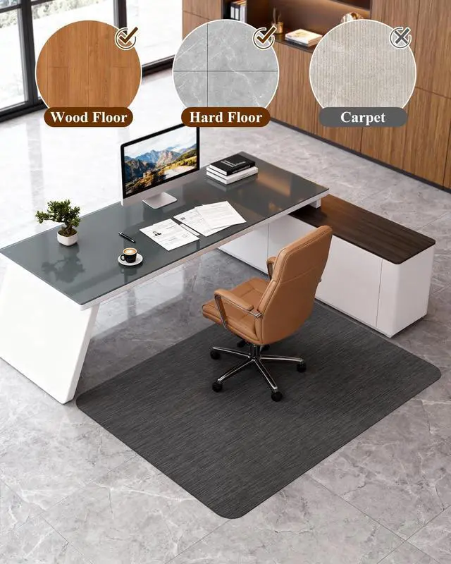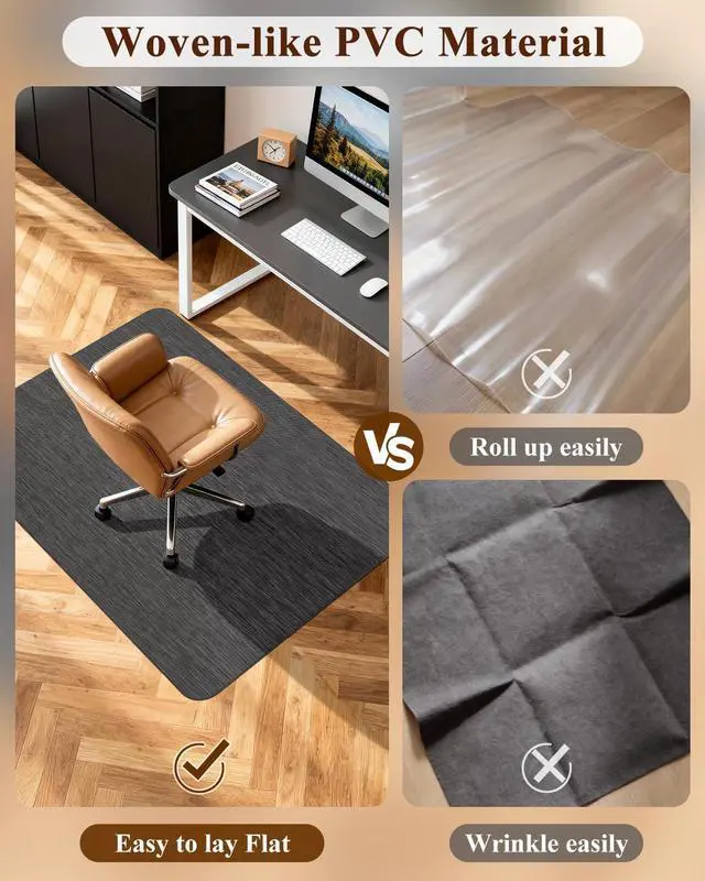 Sturdy and Crack-resistant: This desk chair mat are made of high-quality PVC and rubber with a thickness of 0.08 inches. It has undergone over 18, 000 durability tests, ensuring exceptional sturdiness. Even with long-term use, you don' t need to worry about cracking or peeling.