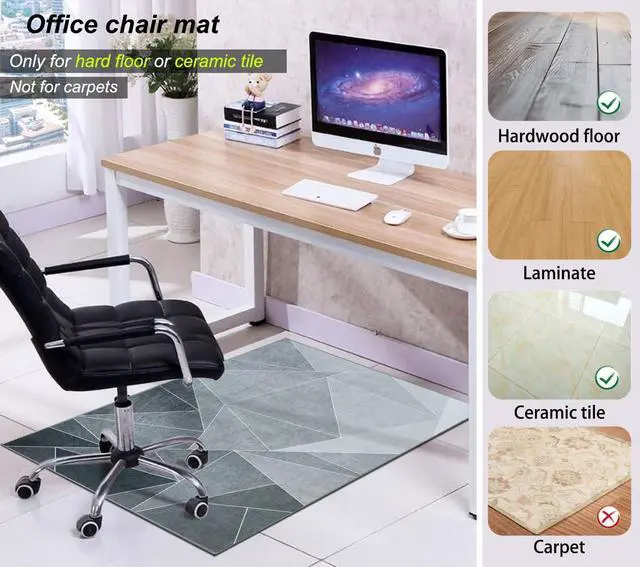Unique and stylish DesignThis chair mat for hardwood floor features a unique design that could be decorated on hardwood floors & low-pile Carpet. The bottom of this office chair mat is textured with a grid pattern, ensuring a firm grip on hardwood floor surfacesNOT FOR HIGH-PILE OR MEDIUM-PILE CARPET. The special bottom material of this chair mat leaves no traces on the floor. Any quality problem contact us for help.