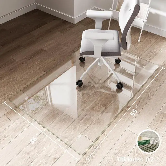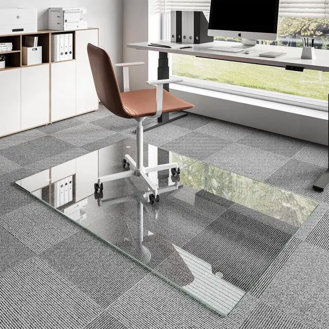 Full-On Style: Say goodbye to bulky, eyesore chair mats. This glass chair mats for carpeted floors is 100% crystal-clear, designed to disappear under your chair while letting your floors steal the show. Whether youre decking out a sleek downtown office, a cozy home study, or a modern living space, it blends in seamlesslylike a protective shield that doesnt cramp your style.