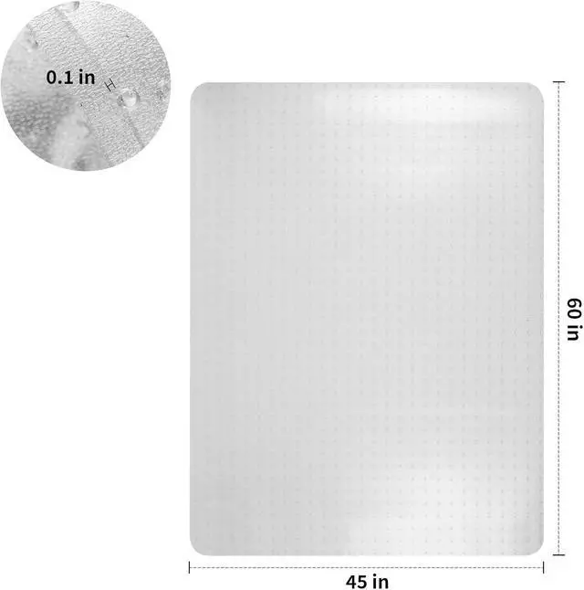 Extra-Large Size & Quick Setup: At this large floor mat (45" x 60" ) fits L-shaped desks and all rolling chairs. Ships rolledflatten easily with warm water (no wrestling! ). Thickened material prevents re-curl, making it the ultimate desk chair mat for carpet in home offices or puppy pens.