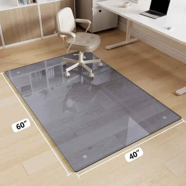 Glass Chair Mat 40" x 60" Heavy Duty Tempered Glass Office Chair Mat, Glass Floor Mat with Round Corner and Polished Edge for Smooth Glide, Office Chair Mat for Carpet, Hardwood Floor, Grey