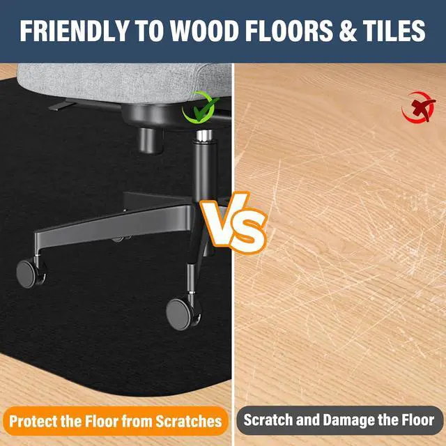 Effectively Hard floor Protector: The floor mat prevents wear and tear on your wheels or floor, such as hardwood, tile, laminate, linoleum floors (NOT suitable for any carpets or half rug), and prolong their service life. It also help reducing the noise of rolling chair, even playing games or working at night will not affect the others.