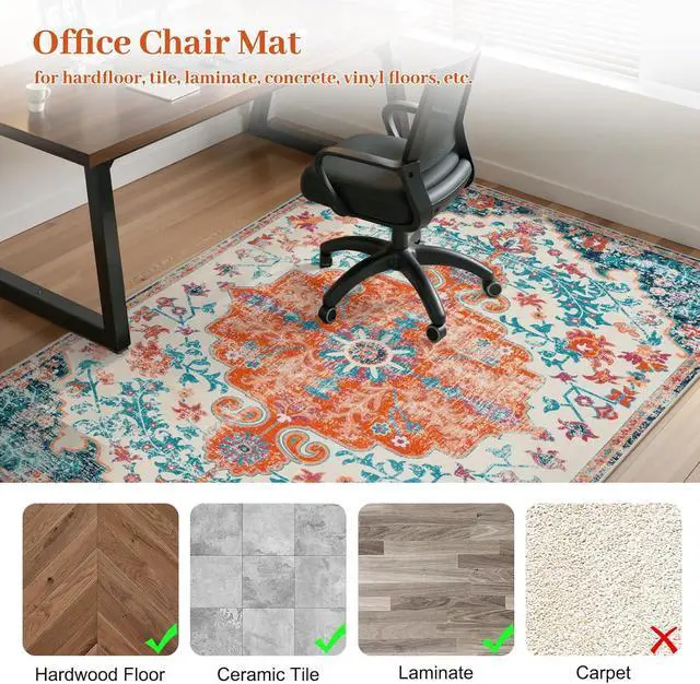 Effectively Protective Floor: Constant chair rolling can scuff, dirty, and wear out your floors. Our chair rug is designed to protect against such damage, preserving the condition of both your floor and chair wheels. Its ideal for hard surfaces such as hardwood, tile, laminate, and linoleum.