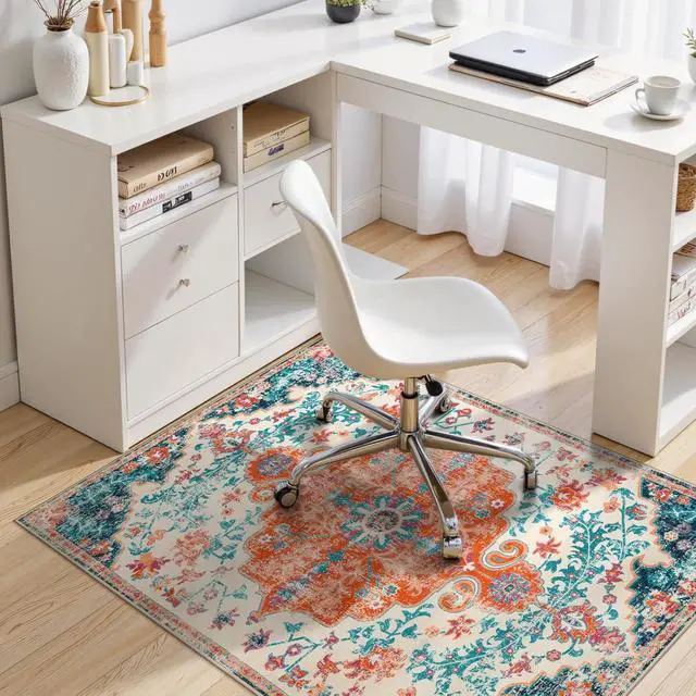 Unique Design Pattern: Unlike traditional clear plastic mats, our office rugs are made from premium printed fabric. The vibrant colors and stylish designs enhance the aesthetic of your space, offering a unique visual experience for your office or workspace.