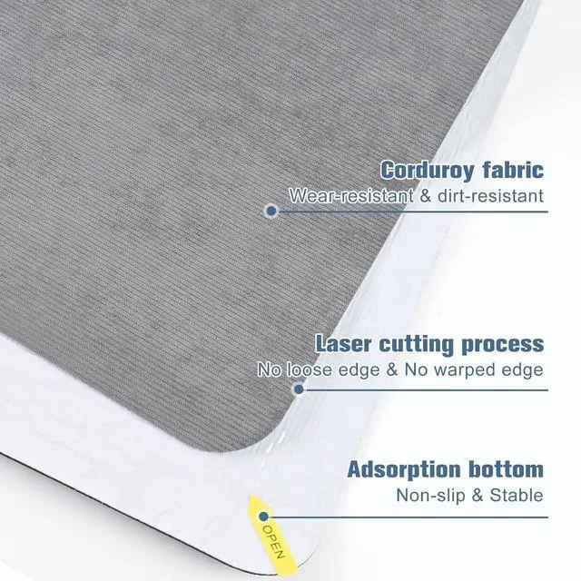 Cutting SizeLarge size of 35" x55" can well cover your work area. The special cross-grain surface of corduroy also allows you to cut it to the desired size at will.