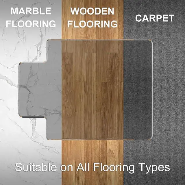 Effortless RollingYou can effortlessly roll your home office chair with lip on to the chair mat without with its unique beveled edge design and smooth surface. Enhancing your comfort and ease of movement. The package also includes 6 of clear and residue-free anti-slip pad, fix your chair pad on place, if you need. This anti-slip pad will not leave any marks on your floor or carpet.