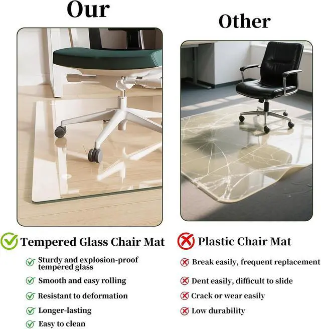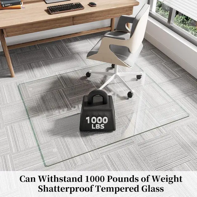 • High-Quality Tempered Glass & Lifetime Warranty: Made from 0.19" premium-grade tempered glass. Glass office chair mat has been tested to withstand up to 1000 pounds of pressure. Compared to other chair mat, our scratch-resistant tempered glass cushion will not crack, curl, break, wear, or fade over time. Lifetime durabilitywe confidently offer a lifetime warranty.
