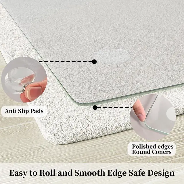 Non-Slip Design for Safety: Equipped with anti-slip pads on the underside, this mat stays securely in place, preventing any accidental shifting. These pads also protect the floor from direct contact with the glass, further reducing the risk of damage. Whether placed under office chairs, coffee tables, or high-traffic areas, the mat provides a stable and safe surface that reduces the likelihood of slips.