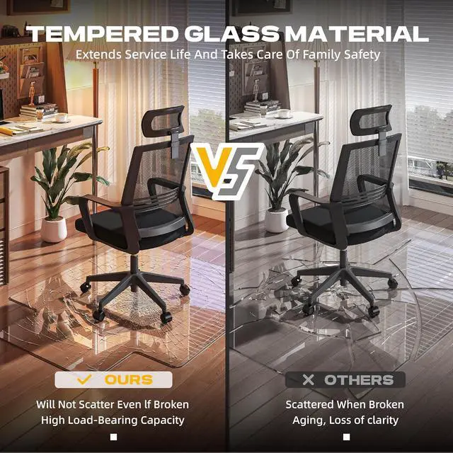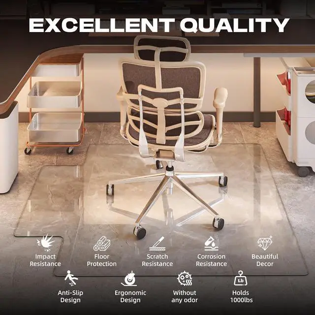 • 1000LBS WEIGHT CAPACITY: The stylish tempered glass chair mat has a m
