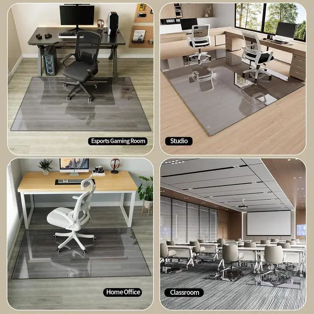 • ENHANCED AESTHETICS & PERFECT FOR DARK FLOORS: Specifically designed to complement modern interiors, the grey tint blends seamlessly with dark hardwood, laminate, or deep-toned carpets, creating a cohesive and upscale look. It features 4 silicone anti-slip pads, transforming a functional protector into a refined design element for your home office, executive suite, or gaming station.