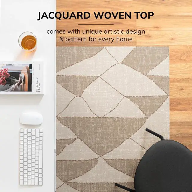 • Jacquard Woven Top: Experience an elegant touch with our desk chair mat featuring a Jacquard woven top. This office chair mat for hardwood floor combines sophisticated design with durability, making it an ideal desk chair mat for hardwood and desk chair mat for hardwood floor.