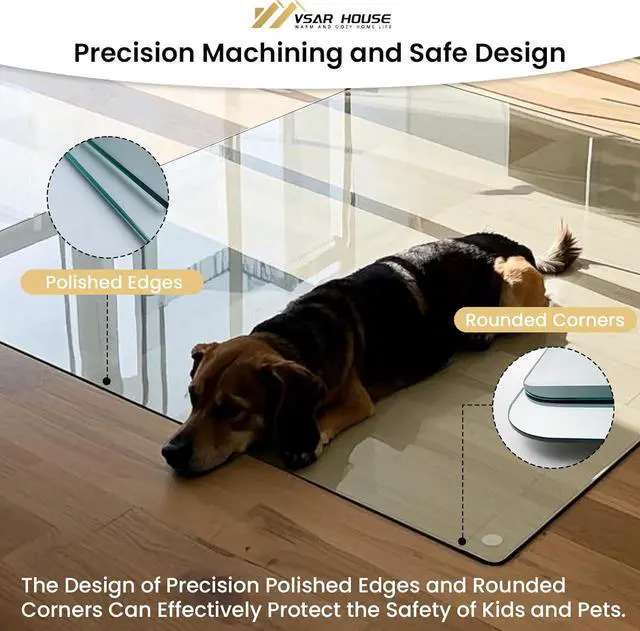 FULLY CLEAR DESIGN: The glass office chair mat is very clear, allowing for a clear view of the floor or carpet, It will not obstruct the pattern on the floor and add a bright luster to the floor. In addition smooth surface, easy to clean food residue. VSAR House tempered glass chair mat is the best choice for home workplace and offices.