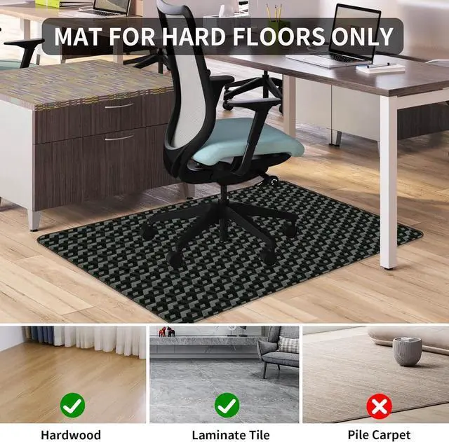 EASY TO CLEAN & MAINTAINDesk floor mat has a black 3D pattern and smooth surface, which is easy to clean and maintain. just wipe it gently with a cloth to clean it as new. If the surface of the chair mat is dirty, also can use the vacuum cleaner directly to cleanNotice: Clean the ground first. Please ensure the chair mat and floor are completely dry and clean)