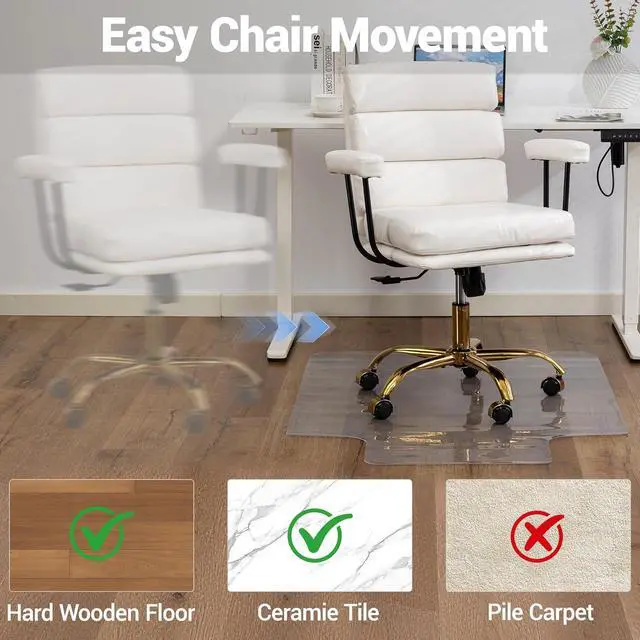 Designed for Hard FloorsSpecially engineered to shield hardwood, tile, laminate, vinyl, stone, and other hard floor surfaces from scratches caused by chair casters and chair legs. Not recommended for carpeted floors.