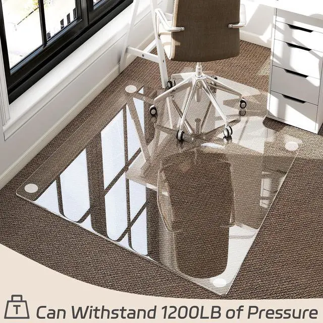 Crystal Clear Transparency: The transparent nature of the glass allows glass desk mat to blend seamlessly with any type of flooringbe it hardwood, tile, or carpetwhile still offering a protective barrier. The tempered glass chair mat maintains the beauty of your existing floor without obscuring its texture or design, making chair mats ideal for spaces where aesthetics are a priority