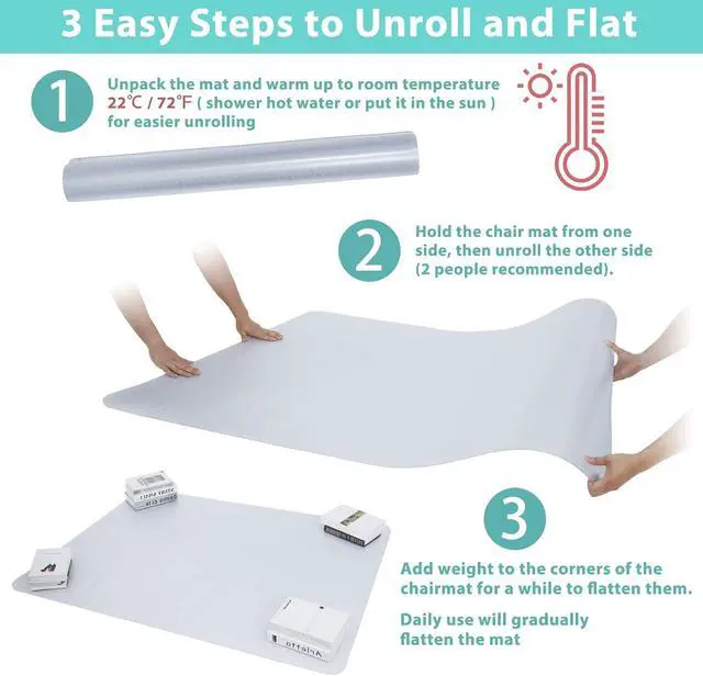 Easy Maintenance: Cleaning is a breeze! Simply wipe down the computer chair mat with a damp cloth or mild cleaning solution to maintain its pristine appearance.