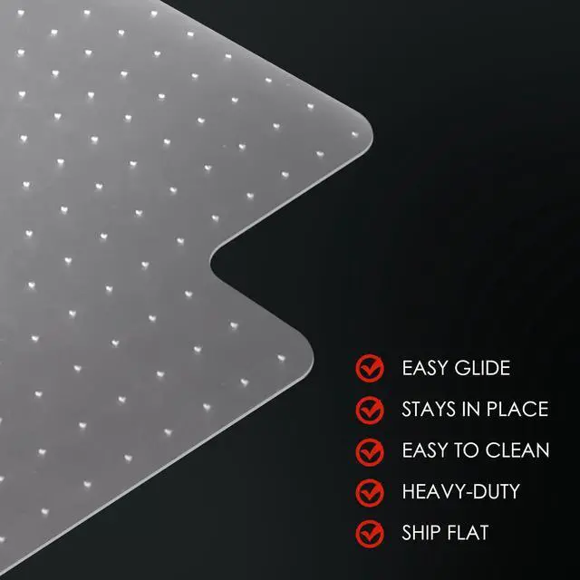 • Specialized DesignedThe Computer Chair Mat designed for your no pile or low pile carpet, Studded underside holds the mat firmly in place so that it won't slip or slide.