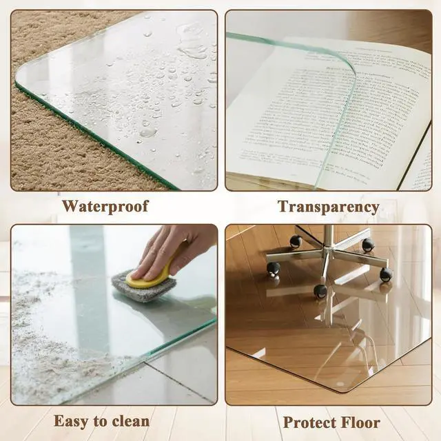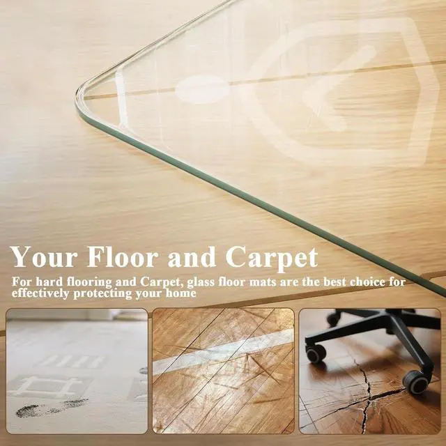 Transparent Design: Crystal clear, the hard floor or carpet pattern can be clearly seen through premium tempered glass mat upgrade version chair mat