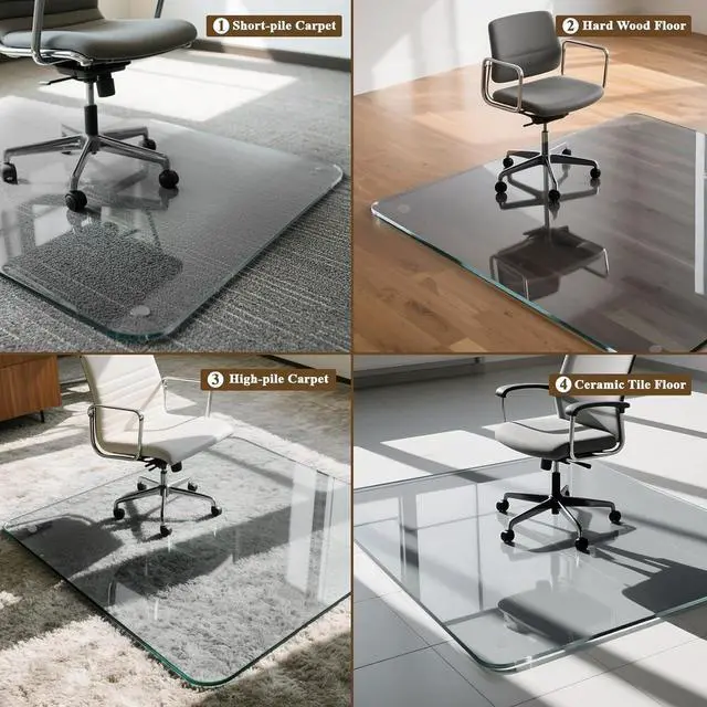 Pure Tempered Glass: The glass chair mat is crafted from premium tempered glass, supporting up to 1200 pounds with exceptional strength and durability, providing long-lasting protection for your flooring