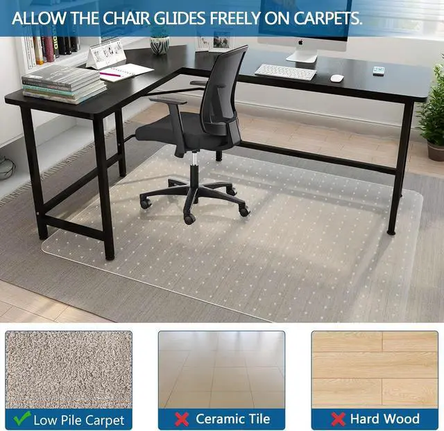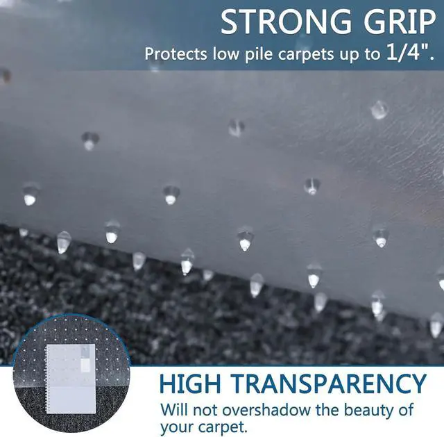 Premium Low Pile Carpet Protection: The office chair mat for carpet effortlessly reduces friction from chair casters, preventing ugly scratches and wear. It' s the perfect solution for low pile carpets up to 1/4 inch thick