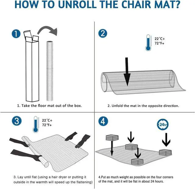 Durable & Long-Lasting: Futurwit plastic mats are made with high-quality PVC, can withstand daily wear and tear. This chair mat for carpet is durable and won' t curl, crack or fade during daily use