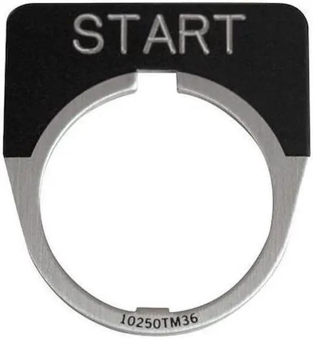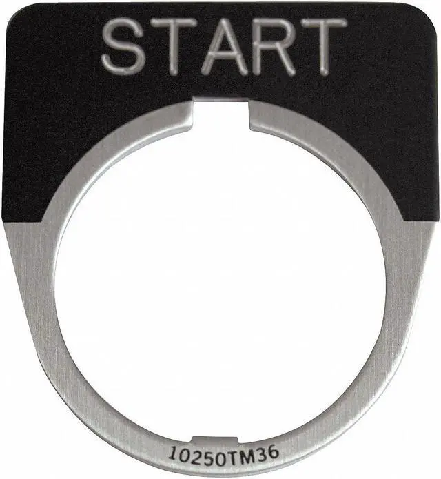 Legend Plate, Half-Round, Legend Start, For Use With 30.5 mm Pushbutton Operators and Indicating Lights, Legend/Background Color Black, Material Aluminum, Height 1.75 in, Width 1.75 in, Diameter 30 mm. This item has been restricted from sale in the following state (s): []