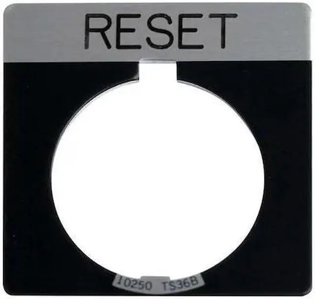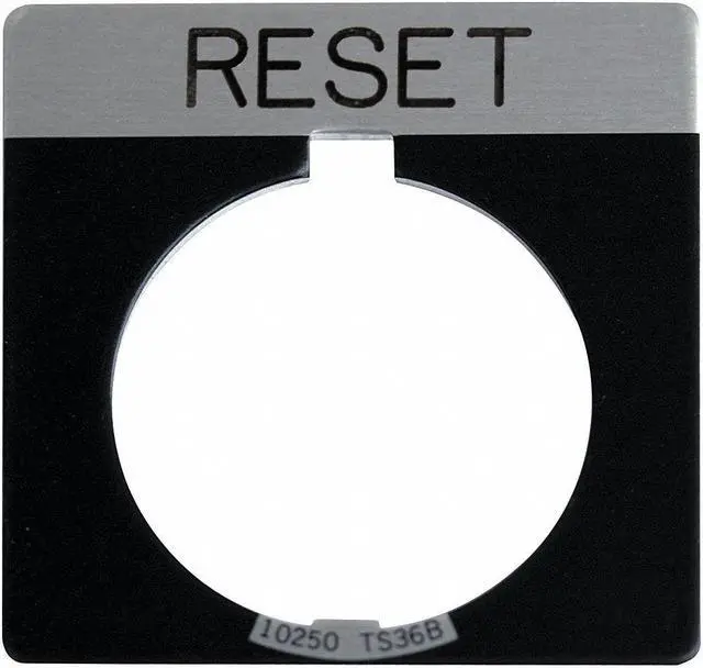 Legend Plate, Square, Legend Reset, For Use With 30.5 mm Pushbutton Operators and Indicating Lights, Legend/Background Color Black, Material Aluminum, Height 1.75 in, Width 1.75 in, Diameter 30 mm