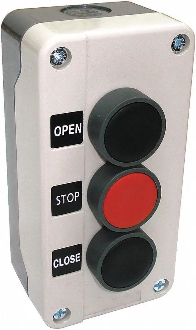 California Proposition 65: This product contains a chemical known to the State of California to cause birth defects or other reproductive harm. Control Station, Number of Operators 3, Number of Pilot Lights 0, Size 22 mm, Legend Open/Stop/Close, Type of Operator Push Button/Push Button/Push Button, Action Momentary/Momentary/Momentary, Operator Color Black, Red, Contact Form 2NO/1NC, Mechanical Interlock No, NEMA Rating 4, 4X, Contact Rating 10A @ 600V AC, 2.5A @ 24V DC, NEMA Contact Rating Designation A600/Q600, Mounting Wall, Height 1.98 in, Width 5.27 in, Depth 2.69 in, Head Material Plastic, Enclosure Material Thermoplastic. This item has been restricted from sale in the following state (s): []