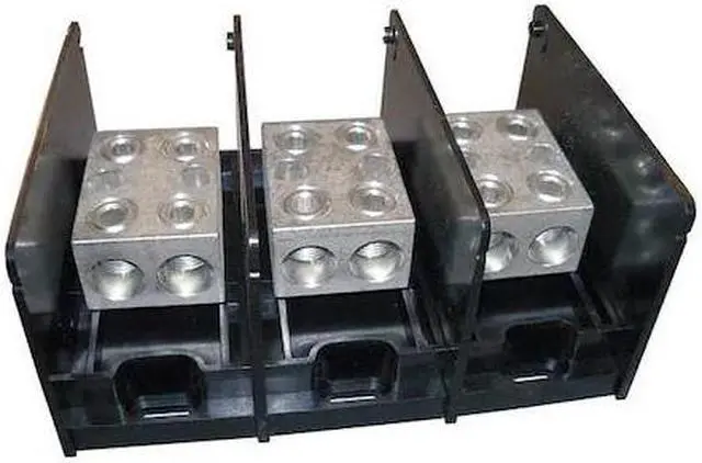 Power Distribution Block, For Conductor Material Aluminum, Line Connections/Pole 2, Line Side Stud Size Not Applicable, For Line Copper Wire Size - Minimum 6 AWG, For Line Copper Wire Size - Maximum 350 kcmil, Load Connections/Pole 2, Load Side Stud Size Not Applicable, For Load Copper Wire Size - Minimum 6 AWG, For Load Copper Wire Size - Maximum 350 kcmil, Maximum Current - Copper Conductor 620 A, Maximum Voltage 1, 000 V, Mounting Type Surface Mount, Number of Poles 3, Overall Depth 3.55 in.