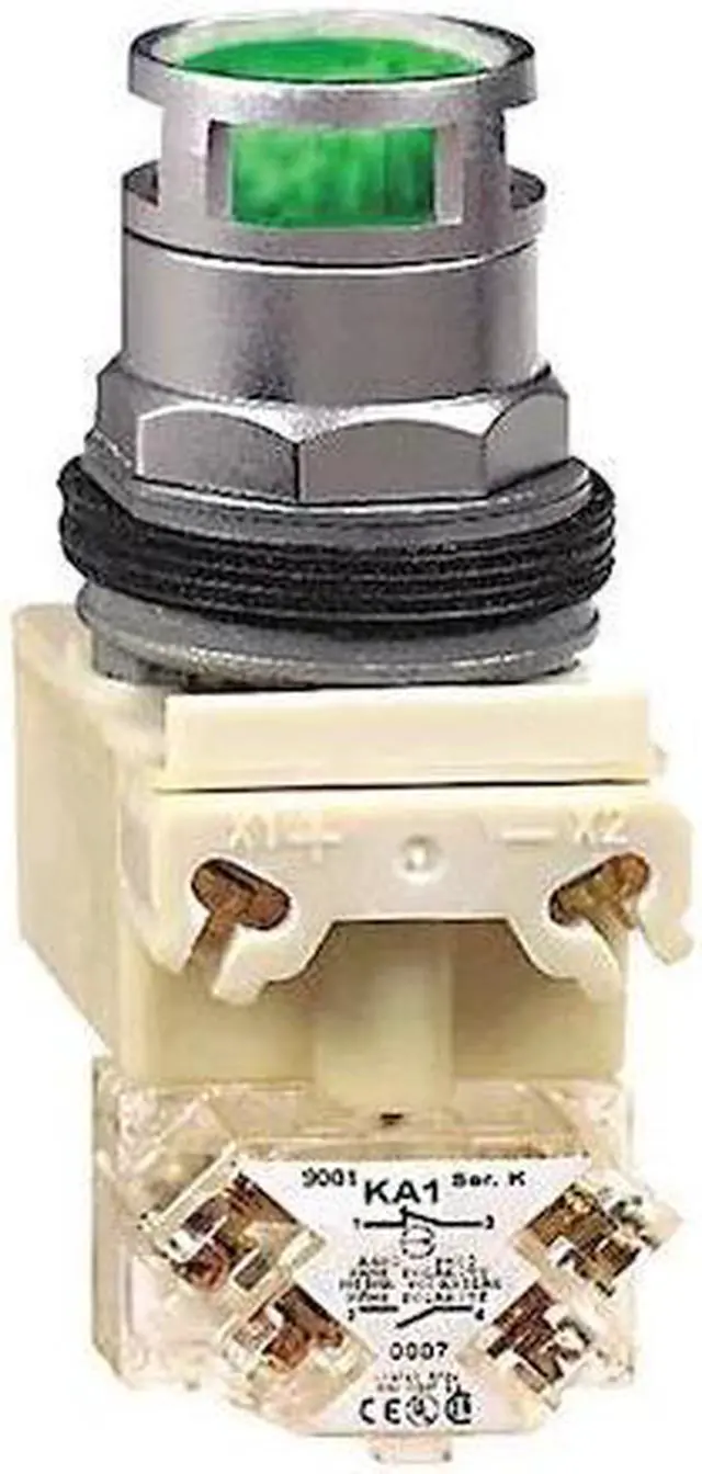 Illuminated Push Button, 30 mm, Momentary Action, Round Extended Guarded Button Type of Operator, Head Material Metal, Contact Form SPDT, Bezel Chrome Plated Zinc Die Cast, Color Green, Contact Rating 10A @ 600V AC, NEMA Contact Rating Designation A600/Q600, Number of Operators 1, NEMA Rating 1, 12, 13, 2, 3, 3R, 4, IP Rating IP66, Legend Not Applicable, Standards CSA C 22.2 No. 14, EN/IEC 60947-1, EN/IEC 60947-5-1, EN/IEC 60947-5-4, JIS C4520, JIS C852, REACH, RoHS, UL 508, WEEE.