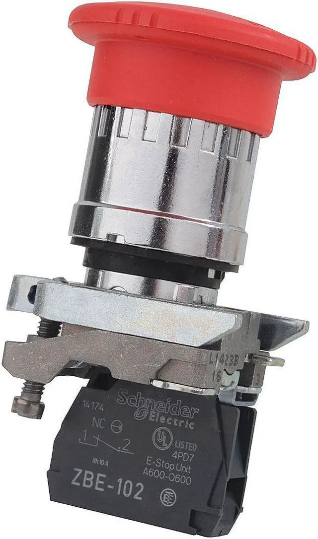 SCHNEIDER ELECTRIC XB4BS8442 Emergency Stop Push Button, 22 mm, 1NC, Red