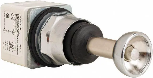 Joystick Operator, 30 mm, Number of Directions 2, Not Included Contact Form, Contact Rating 10A @ 600V AC, NEMA Contact Rating Designation R300, Joystick Material Metal, Bezel Metal, Latching, Vertical Direction of Operation, Action Momentary, NEMA Rating 13, 4, IP Rating IP66, Standards CSA, UL Listed. This item has been restricted from sale in the following state (s): []