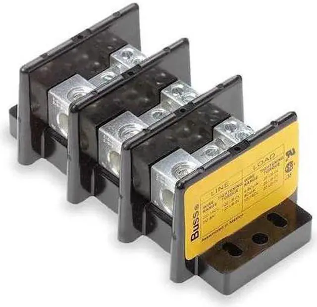 Power Distribution Block, For Conductor Material Aluminum, Copper, Line Connections/Pole 1, Line Side Stud Size Not Applicable, For Line Copper Wire Size - Minimum 14 AWG, For Line Copper Wire Size - Maximum 2/0 AWG, Load Connections/Pole 6, Load Side Stud Size Not Applicable, For Load Copper Wire Size - Minimum 14 AWG, For Load Copper Wire Size - Maximum 4 AWG, Maximum Current - Copper Conductor 175 A, Maximum Voltage 600 V, Mounting Type Surface, Number of Poles 3, Overall Depth 2.12 in.