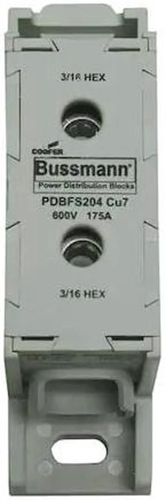 Power Distribution Block, For Conductor Material Aluminum, Copper, Line Connections/Pole 1, Line Side Stud Size Not Applicable, For Line Copper Wire Size - Minimum 14 AWG, For Line Copper Wire Size - Maximum 2/0 AWG, Load Connections/Pole 1, Load Side Stud Size Not Applicable, For Load Copper Wire Size - Minimum 14 AWG, For Load Copper Wire Size - Maximum 2/0 AWG, Maximum Current - Copper Conductor 175 A, Maximum Voltage 600 V, Mounting Type DIN-Rail, Surface Mount, Number of Poles 1. This item has been restricted from sale in the following state (s): []