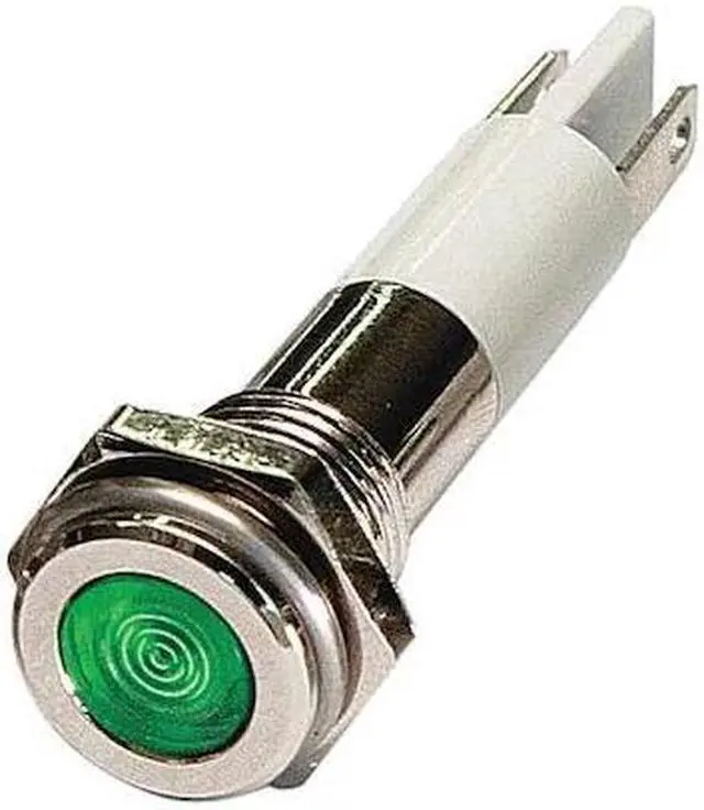 California Proposition 65: This product contains a chemical known to the State of California to cause birth defects or other reproductive harm. Flush Panel Light, LED, Brass Plated Chrome, LED, Plastic (ABS), Green, Voltage 12V DC, Size 8mm Mounting dia, Electrical Connection 0.11 Male Quick Disconnect, Shape Round, Current Drawn 20 mA, Average Life 100, 000 hr, IP Rating IP40, Panel Thickness Up to 0.160 in, Standards cRUus, RoHS. This item has been restricted from sale in the following state (s): []