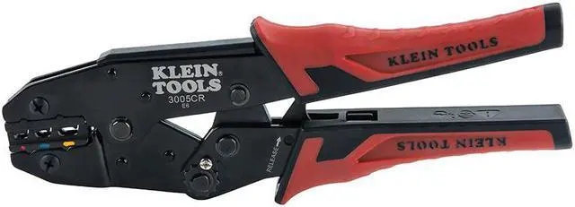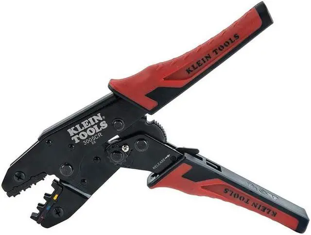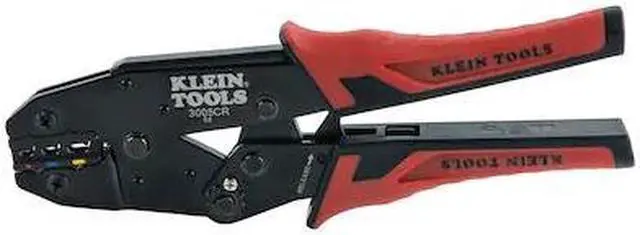 Full Cycle Ratcheting Crimper - 10-22 AWGThe full-cycle Ratcheting Crimper crimps 10-22 AWG insulated wire terminals. This tool features three crimping cavities in one tool with color-coded wire markings for three size ranges of insulated terminals. Crimper design provides low effort to crimp while maintaining a high terminal pull-off force. Built-in ratchet ensures full-cycle crimping for a uniform crimp every time. Compound lever-action of narrow-span handles puts more crimping power into each squeeze. Comfort grips help reduce hand fatigue. Features:Crimps insulated terminals onto 10-22 AWG stranded copper wireAdjustable compound action design puts more crimping power into each squeezeThree crimping cavities in one tool: 22–16 AWG (Red), 16–14 AWG (Blue) and 12–10 AWG (Yellow) terminalsBuilt-in ratchet ensures full-cycle crimping for a uniform crimp every timeUnique cavity design provides consistent crimp from either side of the toolDial adjusts the amount of force applied to the crimpDual-material molded grips provide added comfortSpecifications:Type: Ratcheting CrimperApplication: Wire CrimpingSpecial Features: 3 Crimping CavitiesMaterial: SteelHandle Color: Red and BlackCable Size: 10-22 AWG StrandedConnector Type: InsulatedOverall Length: 9" (2.3 cm)Overall Height: 0.09" (0.2 cm)Overall Width: 3" (7.6 cm)WARNING: This product can expose you to chemicals which are known to the State of California to cause cancer, birth defects or other reproductive harm. For more information go to P65Warnings.ca.gov.