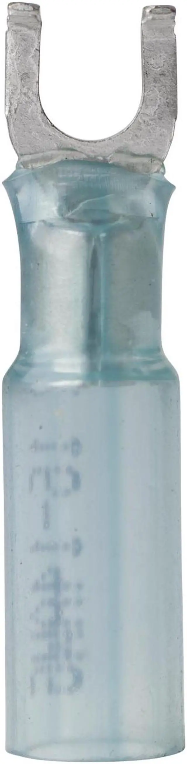 16-14 Gauge - #10 Heat Shrink Spade Terminals - 100-PackAncor heat shrink connectors offer heat activated adhesive built into the sleeve of the heat shrink tubing. When heated, these connectors form a water tight seal and the ultimate vibration and strain relief.Features:Tinned for corrosion resistancePure copper for maximum current flowBrazed seam for maximum strengthUL listed and CSA recognizedWARNING: This product can expose you to chemicals including di(2-ethylhexyl)phthalate (dehp) which is known to the State of California to cause cancer, birth defects or other reproductive harm. For more information go to P65Warnings.ca.gov.