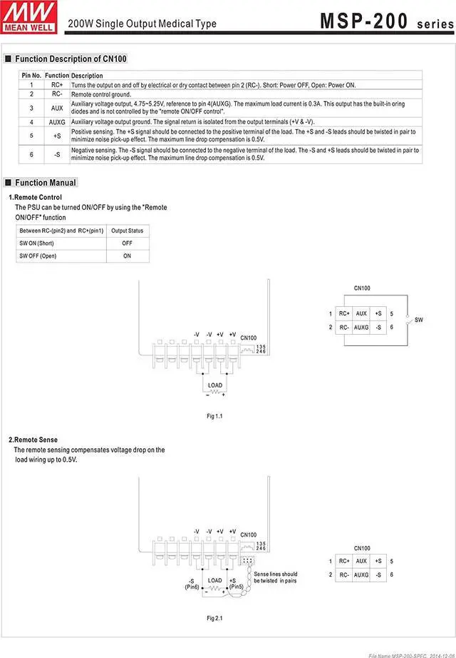 Built-in remote sense function (MSP-200/300/450/600)