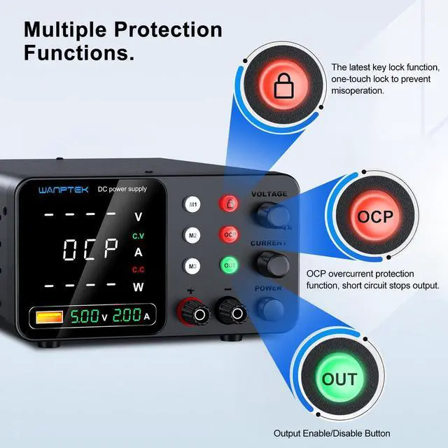WANPTEK POWER This encoder-controlled bench DC power supply is built for technicians and lab users who need stable, precise, and safe power during repair, diagnostics, and testing work. Reliable performance, practical safety features, and efficient control make it an essential tool on any professional workbench.