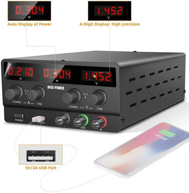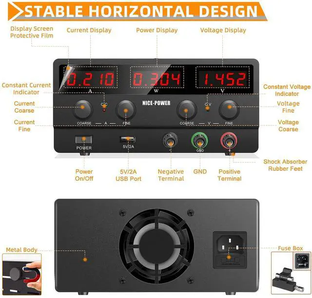 New Design: All-metal body and more compact size, light weight and portable, stable. You can easily carry the DC power supply variable.